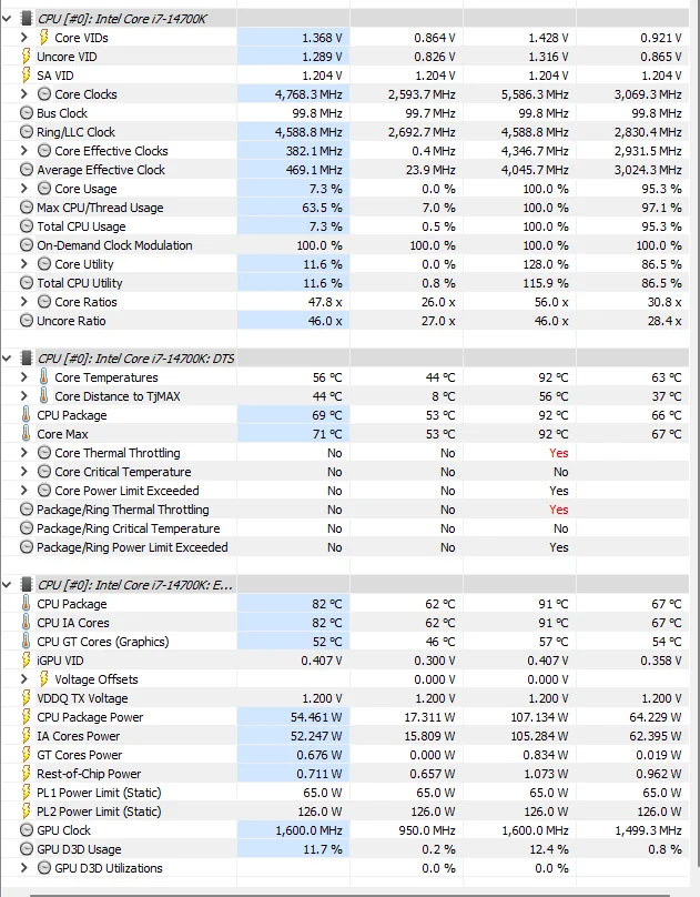 Nhiệt độ/công suất CPU Core i7-14700K: