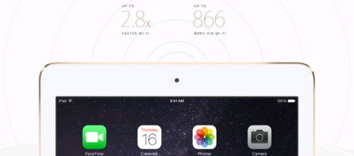 Chiếc iPad Air 2 vừa được tung ra được Apple hứa hẹn có tốc độ kết nối Wi-Fi cực kỳ nhanh, lên đến 866 Mb/giây, gấp đôi so với các dòng trước đó nhờ có kết nối công nghệ 802.11ac với công nghệ MIMO. Thực tế có thể sẽ có chút khác biệt so với mô hình tiếp thị nhưng chiếc iPad Air 2 này vẫn được đánh giá là thiết bị di động kết nối Internet nhanh nhất hiện tại.