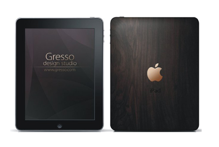 Công ty Gresso cho ra mắt máy tính bảng của Apple với logo mặt sau được đính 18 carat vàng cùng lớp vỏ làm bằng loại gỗ đắt đỏ nhất trên thế giới.