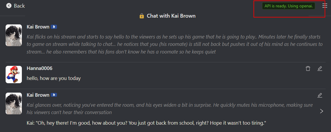 Sau khi thiết lập thành công profile và API, bạn đã sẵn sàng tương tác với các nhân vật khác nhau có trên trang web.