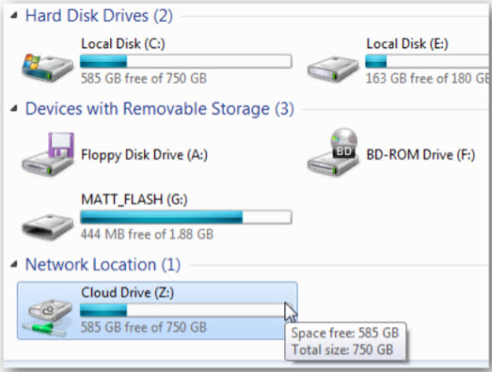 Mở My Computer, SkyDrive (ở ví dụ này là ổ Z) sẽ xuất hiện như 1 phân vùng ổ cứng khác. Kích đúp vào phân vùng này để bắt đầu sử dụng: