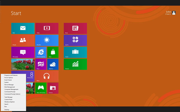 Việc này rất dễ dàng và nhanh chóng. Từ giao diện Metro, mở Charm Bars bằng cách di chuột vào góc dưới bên trái màn hình. Kích chuột phải vào Hot Corner này để mở thực đơn. Chọn Control Panel.
