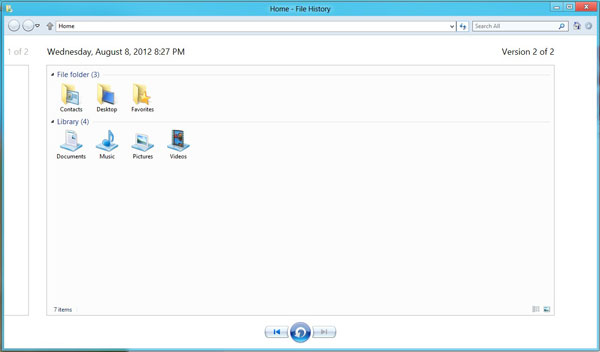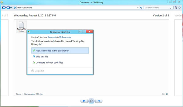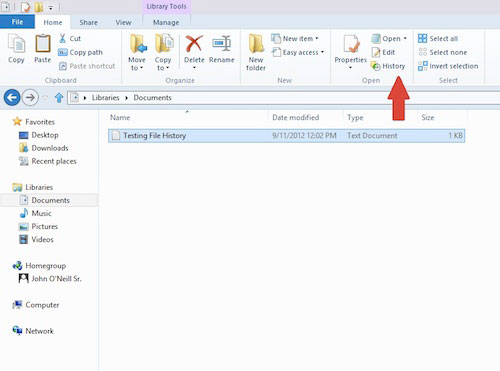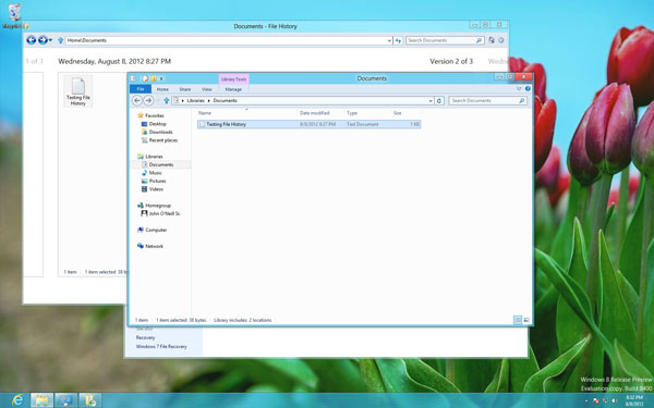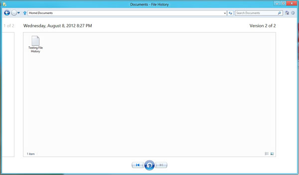 Việc sử dụng File History hữu hiệu đòi hỏi người dùng phải hiểu cách phục hồi một file khi cần thiết. Ví dụ như ở đây, ta sẽ phục hồi một tài liệu cá nhân lưu trong Documents Library.