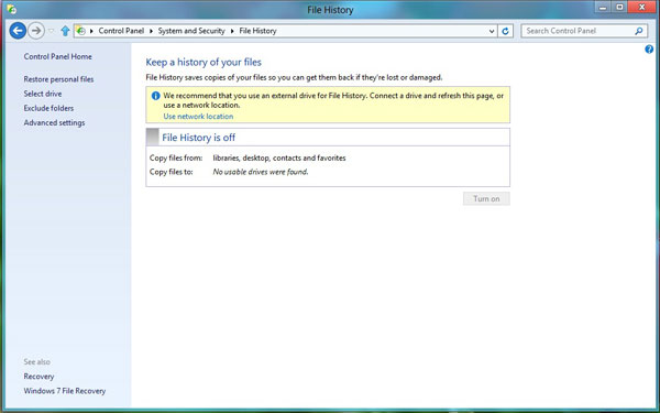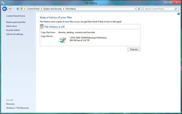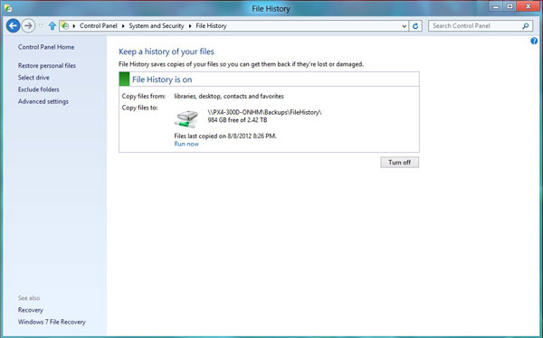 File History rất dễ dàng sử dụng. Chương trình được phát triển để cho phép cả những người dùng Windows ít kinh nghiệm có thể sử dụng. Đây có thể là một trong những tính năng giá trị nhất trên Windows 8 cho các tổ chức vừa và nhỏ.