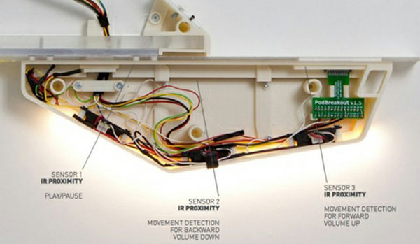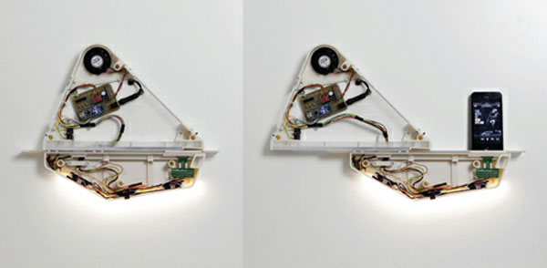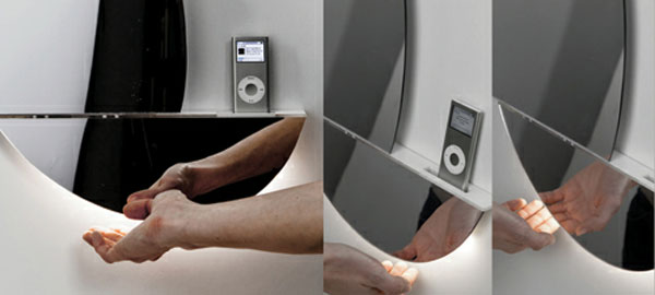 Bề ngoài, loa dock không khác gì một tấm gương với nhiều hình dạng tùy chọn. Khi trượt sang bên trái, người dùng sẽ thấy phía sau tấm gương là một dock sạc dành cho iPhone/iPod. Trong khi đó, bộ điều khiển ở phần bên dưới sử dụng các cảm biến hồng ngoại để điều chỉnh chế độ bật/dừng, tăng/giảm âm lượng và chuyển bài hát chứ không dùng các nút bấm theo kiểu thông thường.