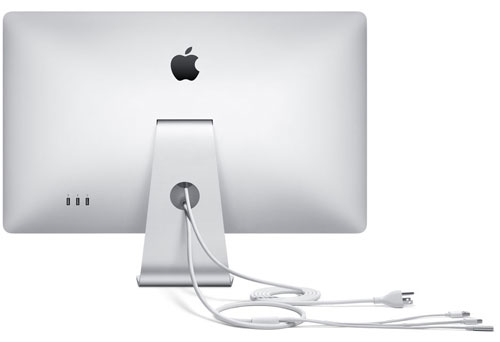Mặt sau Apple LED Cinema Display 27 inch còn được trang bị dây dẫn với chuẩn mini Display Port và USB, đi kèm với hệ thống loa 2.1 tích hợp cùng một camera iSight và mic nằm trên đỉnh màn hình. |