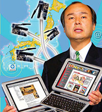 Đầu tiên, ông thôn tính tạp chí hàng đầu về máy tính Ziff-Davis (Mỹ). Ngay sau đó mua tiếp 37% cổ phần mạng tìm kiếm Yahoo và 21% cổ phần hãng truyền hình vệ tinh TV Asahi (Nhật Bản).
