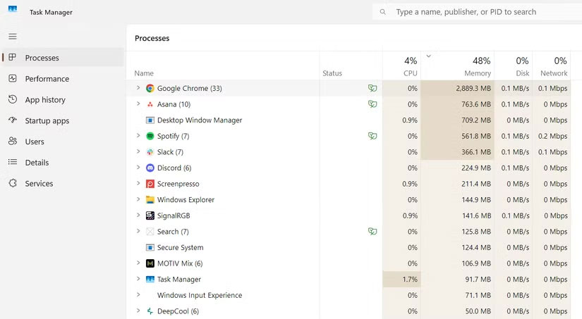 Dù số liệu RAM trong Task Manager không phải lúc nào cũng chính xác tuyệt đối, và Windows thường ưu tiên ứng dụng đang chạy phía trước, nhưng thực tế là mọi app chạy nền đều chiếm chỗ trong dung lượng RAM có hạn – trong khi không làm gì có ích.