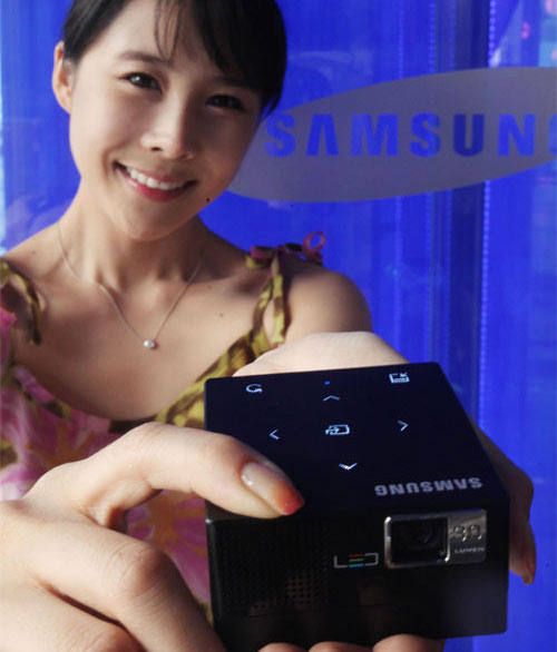 Samsung đã chính thức phát hành mẫu máy chiếu siêu nhẹ và nhỏ gọn SP-H03 tại thị trường Hàn Quốc. SP-H03 là mẫu máy chiếu có thể phục vụ cho nhu cầu giải trí đa phương tiện lẫn làm việc ở mọi nơi nhờ vào kích thước nhỏ gọn và pin có thể tháo rời. Mẫu máy chiếu mini SP-H03 có khả năng trình chiếu các hình ảnh kích thước lên tới 80 inch, đạt độ phân giải WVGA và sử dụng một bóng đèn LED cho độ sáng 30 Lumens với tuổi thọ lên tới 30.000 giờ sử dụng.