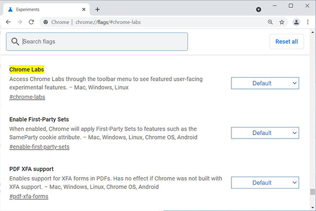 Khi Chrome Labs xuất hiện, hãy thay đổi nó thành Enabled và khởi động lại trình duyệt để tính năng này hoạt động.