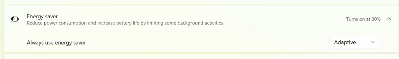 Vài tuần trước, các chuyên gia đã phát hiện tham chiếu đến tính năng gọi là "tiết kiệm năng lượng thích ứng" (adaptive energy saver) trong một số bản build Windows 11 preview. Microsoft xác nhận thông tin nhưng cho biết tính năng này chưa hoạt động ổn định. Giờ đây, với bản build Canary mới nhất, chế độ tiết kiệm năng lượng thông minh này đã khả dụng để người dùng thử nghiệm trên laptop và máy tính bảng Windows 11.