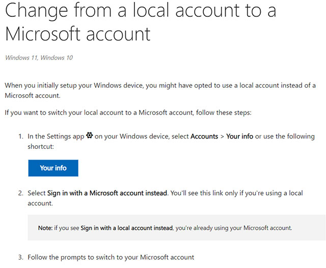 Microsoft khuyến khích người dùng chuyển từ tài khoản cục bộ sang tài khoản Microsoft, với hướng dẫn chi tiết như sau: