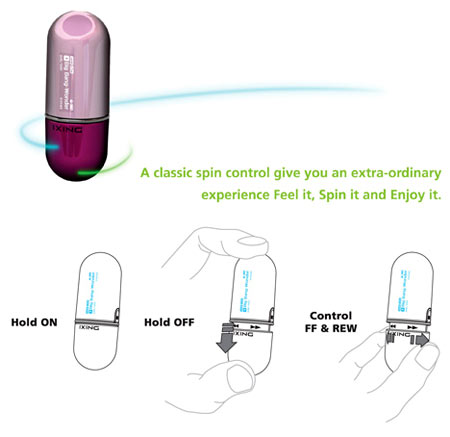 Sản phẩm của iXing được Sangnam Park thiết kế, hỗ trợ định dạng MP3 và WMA, có FM, kết nối USB 2.0. Màn hình hiển thị trạng thái của máy ở ngay trên thân "viên thuốc".