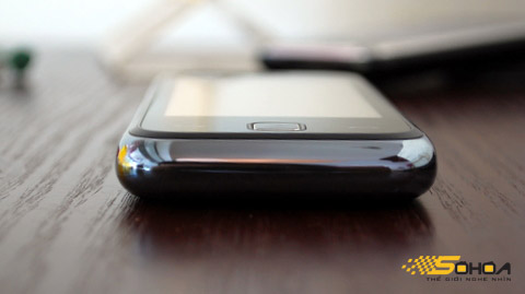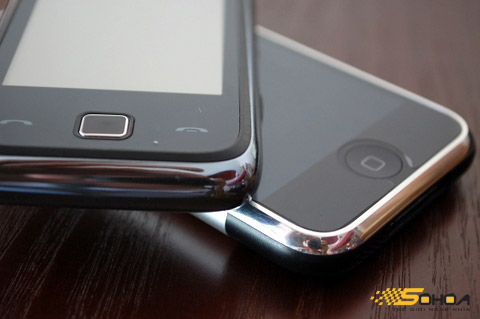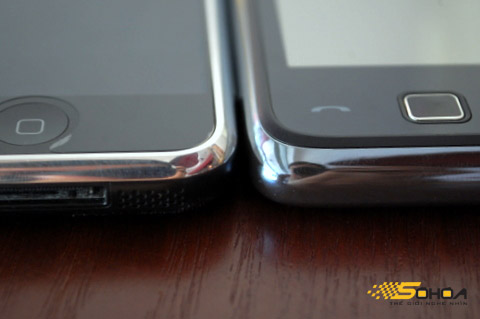 ... tuy nhiên, cạnh bên đường viền kim loại rộng và sâu hơn so với điện thoại của Apple.
