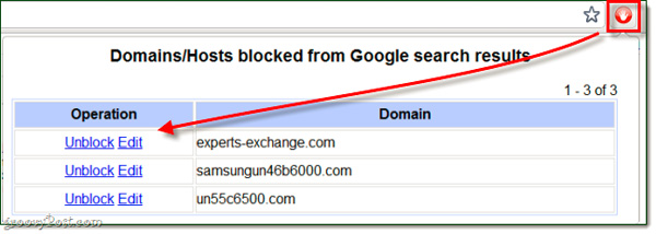 Mặt khác, nếu muốn loại bỏ 1 trang web nào đó khỏi danh sách Block, hãy nhấn nút màu đỏ ở góc trên bên phải trình duyệt và chọn Unblock: