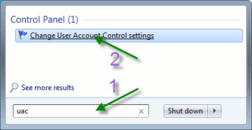 Để tắt tính năng này, chọn Start Menu và gõ uac vào ô Search:
