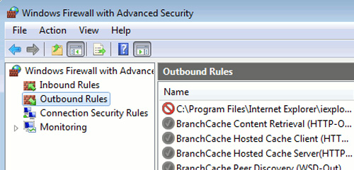 Nếu mở mục thiết lập, tùy chỉnh của Firewall, các bạn sẽ thấy Internet Explorer đã được thêm vào trong phần Outbound Rules: