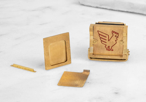 Landers tạo ra chiếc máy ảnh mini này để tham gia cuộc thi tạo ra những sản phẩm có kích thước nhỏ hơn 1 inch vuông và có logo hình con gà trống của nhà sản xuất máy tiện Bantam Tools.