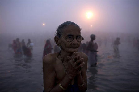| Devotee Morning Prayers at Sangam (Người mộ đạo) của Rajesh Kumar Singh (Ấn Độ) với Canon EOS 5D. |
