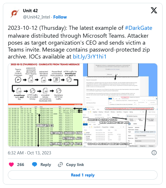 Mục tiêu nhận được tin nhắn lừa đảo giải thích rằng sẽ có những thay đổi đối với lịch nghỉ phép của nhân viên và một số người, bao gồm cả nạn nhân, sẽ bị ảnh hưởng. Tin nhắn lừa đảo chứa liên kết tải xuống lịch trình mới, thực chất là liên kết đến phần mềm độc hại DarkGate. Nếu file độc hại được thực thi trên máy mục tiêu, nó sẽ cài đặt malware, giúp kẻ tấn công có toàn quyền truy cập vào thiết bị và dữ liệu của thiết bị.
