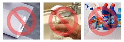 - Không sử dụng các loại nước chùi rửa kính thông thường bán trên thị trường, xà phòng.... Những dung dịch này có chứa các loại hóa chất có thể ảnh hưởng xấu đến màn hình của bạn. Đặc biệt bạn nên tránh các dung dịch có chứa các hóa chất như ammonia, acetone, toluene hoặc cồn.
