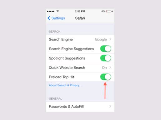 Trình duyệt Safari trong iOS 8 có một tính năng tuyệt vời giúp duyệt web nhanh hơn. Sau khi thiết lập bằng cách vào mục Settings --> Safari --> Preload Top Hit và chuyển sang chế độ ON, Safari sẽ tải trước những kết quả tìm kiếm mà bạn đã thực hiện. Nếu dung lượng dữ liệu tải về là mối quan tâm, đặc biệt là khi đang sử dụng mạng di động, bạn nên tắt chế độ này để tiết kiệm.