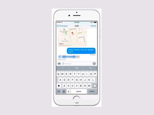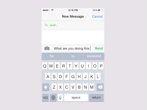 Ứng dụng Messages trong iOS 8 giờ đây tích hợp khả năng đoán từ khi nhập văn bản rất hiệu quả. Messages sẽ “học” cách mỗi người dùng khi nhập văn bản và sẽ thông báo những cụm từ thích hợp với từng người. Như vậy, Messages có thể cung cấp những từ ngữ trang trọng khi giao tiếp với sếp và những từ ngữ mang tính thân mật hơn khi chat với bạn bè, người thân. Nếu không thích tính năng QuickType, bạn có thể dễ dàng tắt nó đi bằng cách nhấn và giữ vào biểu tượng hình quả địa cầu bên cạnh bàn phím, sau đó chuyển “Predictive” sang OFF.