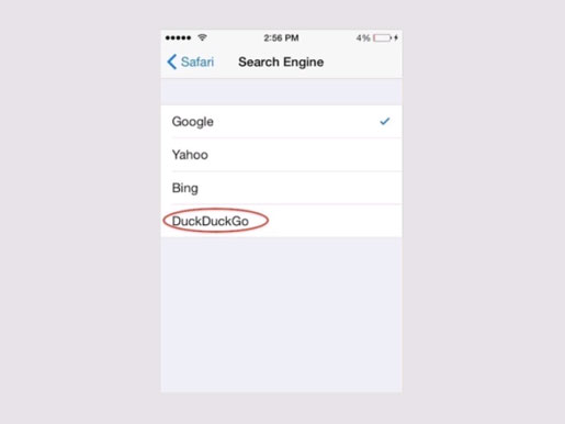 Apple đã thêm một tùy chọn cơ chế tìm kiếm DuckDuckGo mới vào iOS 8. Đây là một tính năng hướng đến việc bảo vệ quyền riêng tư cho người dùng và trái với dịch vụ của Google, DuckDuckGo sẽ không theo dõi những gì người dùng tìm kiếm trên các trang web. Để chọn DuckDuckGo làm dịch vụ tìm kiếm mặc định, hãy vào mục Settings --> Safari --> Search Engine và chọn DuckDuckGo thay vì các dịch vụ khác như Google, Yahoo!, Bing.