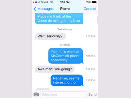 Được giới thiệu lần đầu tiên trong phiên bản iOS 7, tính năng này rất hữu ích cho người dùng iPhone mới làm quen với iOS 8. Để xem một tin nhắn trong ứng dụng Messages được gửi đi khi nào, bạn chỉ cần đơn giản quét qua trái trong màn hình hiển thị các tính nhắn và sẽ thấy thời gian gửi xuất hiện bên cạnh mỗi tin nhắn.