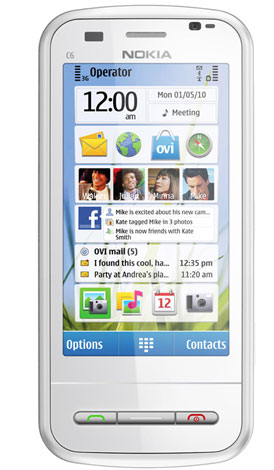 Nokia C6 chạy hệ điều hành Symbian S60 phiên bản thứ năm giống như N97, 5800 XpressMusic hay 5230 gần đây, nhưng mang các ứng dụng như tin nhắn, kết nối mạng xã hội hiển thị trực tiếp ra màn hình chủ. Nhưng tính năng mới cho phép người dùng theo dõi trực tiếp thông điệp từ bạn bè.