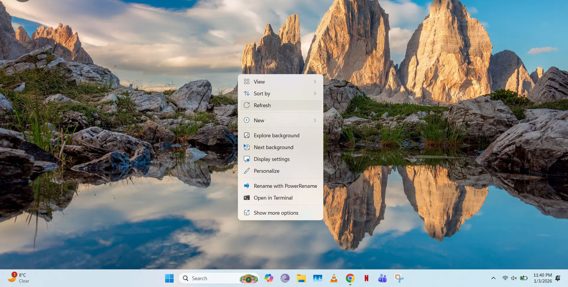 Khi bạn nhấn Refresh trên desktop Windows, hệ điều hành chỉ đơn thuần vẽ lại giao diện desktop . Cụ thể hơn, Windows sẽ làm mới danh sách file, thư mục và biểu tượng đang hiển thị, đồng thời đồng bộ lại với cấu trúc thư mục thực tế trong hệ thống. Thao tác này thường hữu ích trong các trường hợp icon bị lỗi, bị thiếu, hoặc khi bạn vừa sao chép hay di chuyển file nhưng chúng chưa kịp xuất hiện trên màn hình desktop. Ngoài tác dụng đó ra, Refresh không làm gì thêm cả.