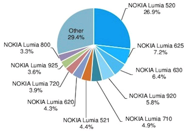 Nguyên nhân khiến Lumia 630 tăng trưởng mạnh là do thiết bị này có mức giá khá tốt và có cấu hình hấp dẫn. Dù Lumia 520 vẫn đang là thiết bị phổ biến nhất nhưng thị phần của máy đang bị suy giảm khá mạnh.