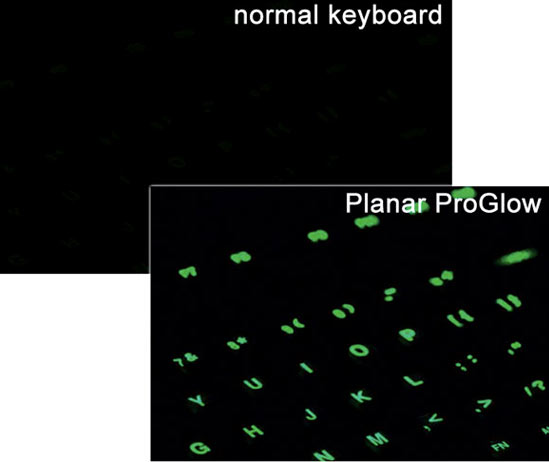 Ngoài việc giới thiệu màn hình LCD 3D thì Planar Systems cũng đồng thời giới thiệu bàn phím không giây được gọi là ProGlow. Theo nhà sản xuất thì đây là bàn phím đầu tiên của thế giới được thiết kế cho người dùng chuyên nghiệp sử dụng màn hình 3D. Bàn phím kiểu QWERTY với 105 phím và có 7 mức điều chỉnh ánh sáng, giúp người dùng nhìn rõ các phím khi mang kính 3D.
