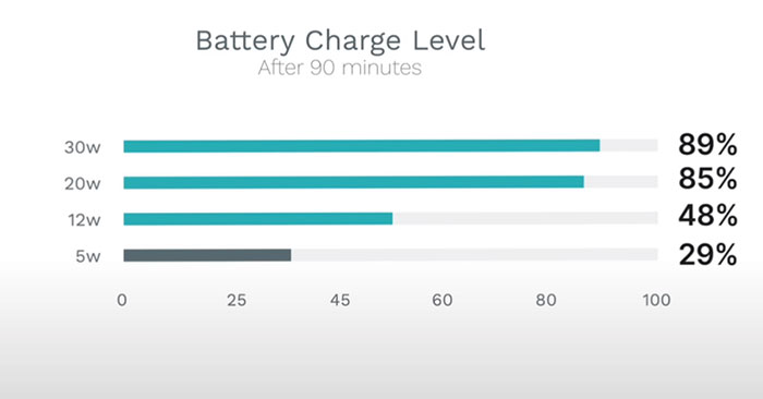 Do đó, với thời gian sạc đầy không quá chênh lệch, các chuyên gia cho rằng, người dùng cần một củ sạc nhỏ gọn nhưng vẫn đảm bảo được thời gian sạc tiêu chuẩn thì không cần chi tiền để mua của sạc 30W của Apple, củ sạc 20W vẫn sẽ là lựa chọn tốt.