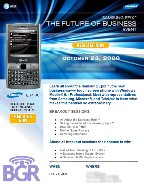 Được giới thiệu như một trong những phiên bản của Omina, Samsung i907 đã được FCC thông qua vào tháng 7 và sẽ được phát hành bởi hãng AT&T. Đến nay, sau 3 tháng, AT&T đã chính thức xác nhận, đồng thời công bố tên gọi mới cho i907 là Epix.