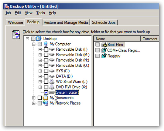 Cửa sổ Backup Utility hiện ra, chọn My Computer và đánh dấu vào ô System State: