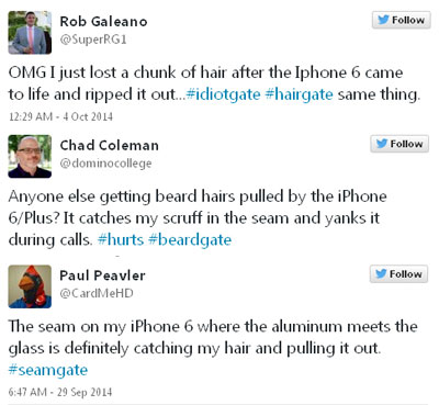 Một tuần qua, nhiều liên tục chia sẻ những hình ảnh về iPhone cong trong quá trình sử dụng. Tuy nhiên, khi sự việc có phần lắng xuống thì một vấn đề khác - được trang các trang công nghệ gọi là "beardgate" - lại nổi lên. Beardgate là từ chỉ hiện tượng tóc hoặc râu bị kẹt ở điểm nối giữa màn hình và khung nhôm trên iPhone 6 Plus.