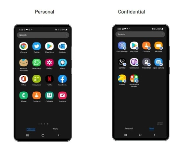 Ở chế độ cá nhân Personal, người dùng chỉ được phép cài đặt ứng dụng từ Google Play Store và được cung cấp giải pháp chống virus xâm nhập. Khi chuyển sang Confidential Work Space, bạn sẽ chỉ được dùng các ứng dụng đã cài sẵn không thể tải và cài đặt thêm ứng dụng từ bất cứ nguồn nào. Đương nhiên, các tác vụ có nguy cơ mất an toàn an ninh khác như chụp màn hình cũng sẽ bị cấm.