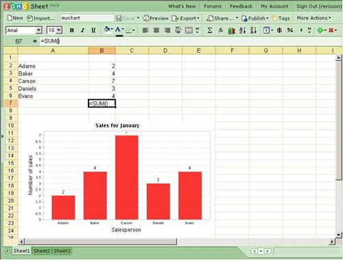 Zoho Write không có một số thứ chúng ta quen thuộc và yêu thích như: cột, thanh, đường và đồ thị hình tròn (cả 2D và 3D) vốn rất dễ tạo. Chúng không phải là quá hấp dẫn nhưng gần như phù hợp với tất cả chúng ta khi đơn giản bạn chỉ muốn minh hoạ một dữ liệu số nào đó. Bạn không thể có được cách làm việc với vô số chức năng đồ thị của Office. Một số điểm kỳ quặc của Zoho Sheet: khi mở một worksheet mới, bạn được đặt mặc định ở ô C3 chứ không phải A1 như ở các chương trình khác.