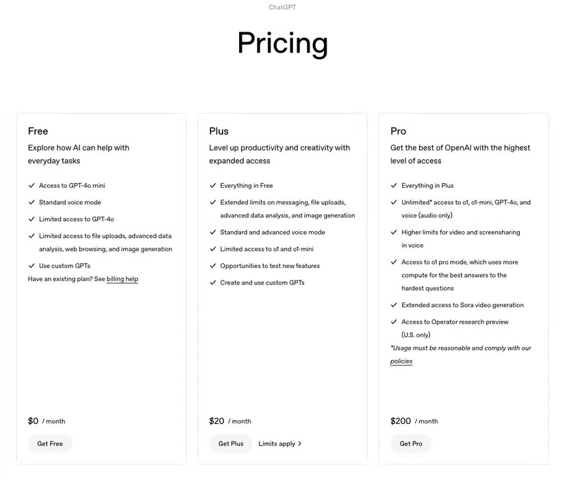 ChatGPT Plus có giá 20 USD/tháng, cũng như Microsoft Copilot Pro và Google One AI Premium Plan. Các mô hình nâng cao có thể tốn kém hơn nhiều. Mặc dù các công cụ này cung cấp nhiều tính năng, nhưng chi phí có thể tăng lên, đặc biệt là nếu bạn đăng ký nhiều hơn một công cụ.