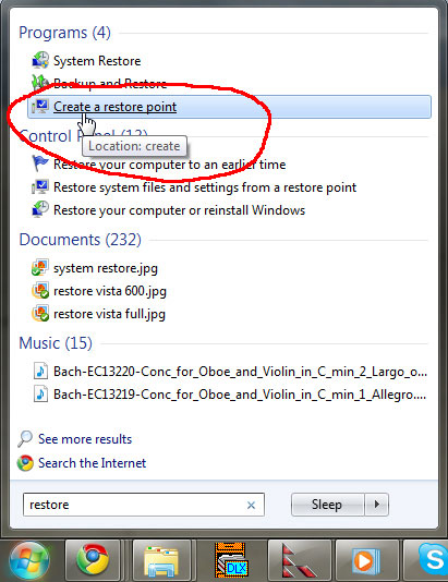 Windows XP: nhấn Start trên thanh trình đơn, chọn All Programs, Accessories, System Tools, và chọn System Restore. Chọn Create a restore point, nhấn Next, thực hiện theo các chỉ dẫn.