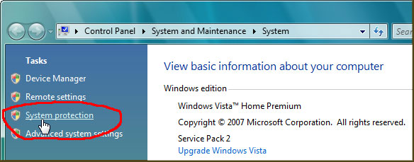 Windows Vista: nhấn Start trên thanh trình đơn, nhấp phải chuột trên Computer, chọn Properties, nhấn đường liên kết System protection. Nhấn nút Create và làm theo các chỉ dẫn.