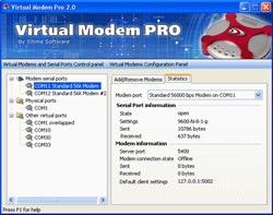 Cách tạo modem ảo bằng Virtual Modem Pro rất dễ dàng. Bạn chỉ cần nhấn vào nút “Add modem” là chỉ trong vòng vài giây, một modem chính hiệu mà máy tính xem như một modem thật sẽ được cài đặt lên máy tính của bạn. Chiếc modem ảo này sẽ được thiết lập như một “Standart 56000 bps Modem” trên máy tính. Bạn có thể xây dựng đến… 250 modem ảo trên máy tính mà mỗi modem sẽ tương thích với một cổng “COM”.