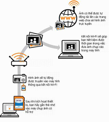 Chỉ cần một camera số có hỗ trợ khe cắm thẻ SD và máy tính có kết nối Wi-Fi, toàn bộ ảnh chụp được từ camera số sẽ được truyền tải về máy tính. Như vậy sẽ tích kiệm được thời gian bạn copy trực tiếp ảnh từ thẻ nhớ vào máy tính cũng như giúp ích cho việc tác nghiệp của phóng viên khi đang đi công tác xa.