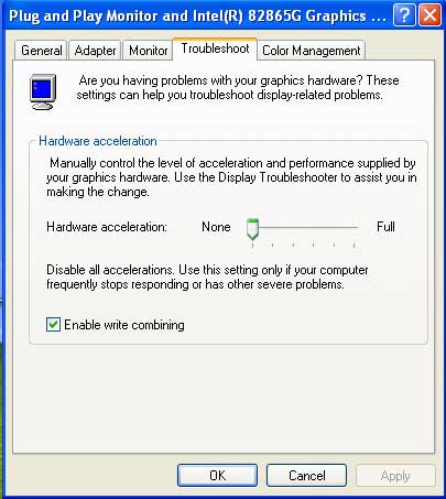 Tiếp tục vào thẻ Settings chọn Advanced. Hộp thoại mới sẽ xuất hiện ta chọn thẻ Troubleshoot và tìm đến mục Hardware acceleration. Tại đây, sẽ có thanh trượt kéo từ None sang Full. Theo mặc định nút thanh trượt sẽ nằm ở Full, bạn kéo nó trở về None. Nhấp OK ở các cửa sổ đã mở.