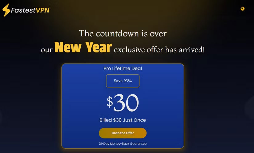 Một ví dụ điển hình là tìm kiếm VPN "trọn đời" và tìm thấy một VPN tên là FastestVPN, mà nhiều người chưa từng nghe đến trước đây. Một dấu hiệu đáng ngờ ngay lập tức là đồng hồ đếm ngược giả trên trang chủ cho "ưu đãi" mới nhất của họ. Các điều khoản dịch vụ thường không đề cập đến gói "trọn đời", vì vậy không có gì đảm bảo điều này sẽ kéo dài trong bao lâu.