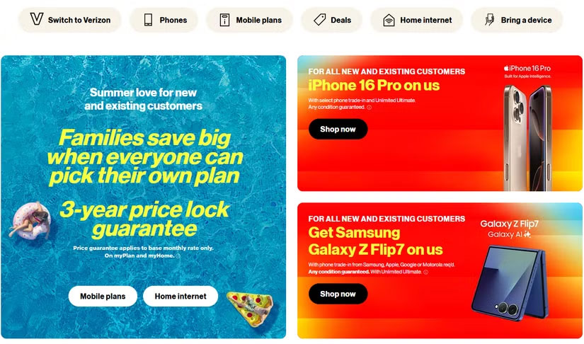 Tuy nhiên, điều không dễ nhận thấy là bạn cần đăng ký một trong những gói cước đắt nhất để nhận được điện thoại "miễn phí". Ví dụ, trang chủ của Verizon quảng cáo "iPhone 16 Pro miễn phí", trong đó có ghi chú rõ ràng rằng điều này chỉ áp dụng cho mẫu 128GB, bạn phải đăng ký gói Unlimited Ultimate cao cấp nhất (có giá ít nhất 90 USD/tháng trước thuế và phí), và đổi điện thoại từ một số nhà sản xuất nhất định.