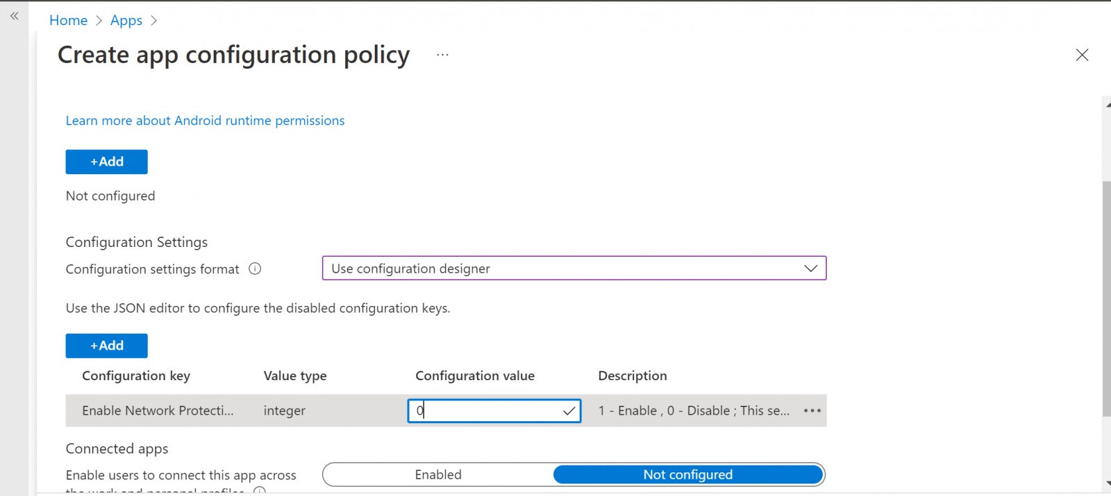 Mặc dù Mobile Network Protection được bật theo mặc định trên các thiết bị di động đã đăng ký nhưng Microsoft cũng cung cấp thông tin chi tiết về cách cài đặt cấu hình tính năng này trên thiết bị Android và iOS qua trung tâm Microsoft Endpoint Manager Admin.