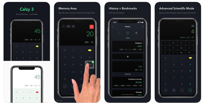 Calzy là một ứng dụng máy tính với nhiều tính năng mới liên quan đến các lĩnh vực khác như khoa học, lịch sử... Calzy có giao diện đơn giản nhưng không kém phần hiện đại giúp người dùng không cảm thấy nhàm chán. Ứng dụng này hiện có giá 1.99 USD.