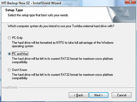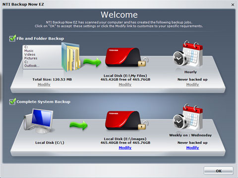 Toshiba là hãng sản xuất thiết bị lưu trữ đầu tiên tích hợp phần mềm NTI BackupNow EZ cho phép người sử dụng sao lưu toàn bộ hệ thống chỉ với một cú click chuột. NTI BackupNow EZ sẽ quét toàn bộ hệ thống và đưa ra tuỳ chọn sao lưu tốt nhất cho hệ thống.